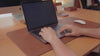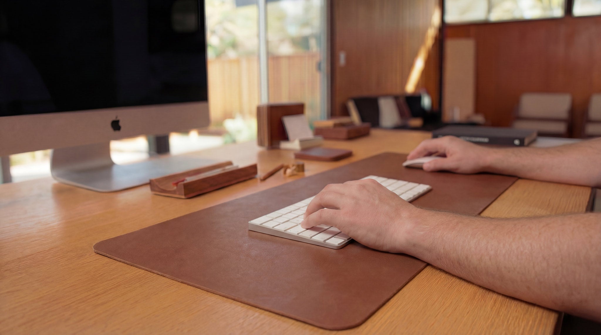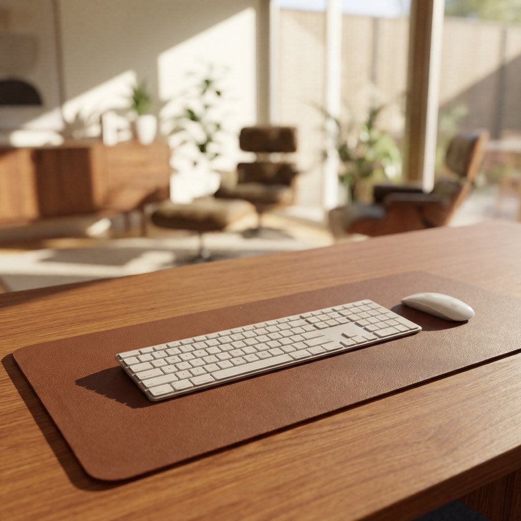 Once you've worked on real leather, you won't go back. The Richmond desk mat dampens typing and mouse sounds naturally – not through technology, but through material. Natural leather absorbs sound differently to plastic or rubber. The difference is subtle but noticeable. Less noise, more focus.