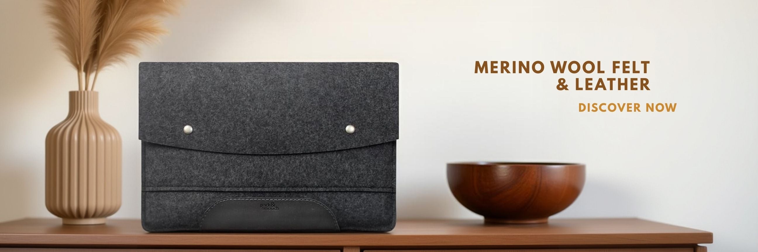 Leather sleeves and Merino wool felt accessories