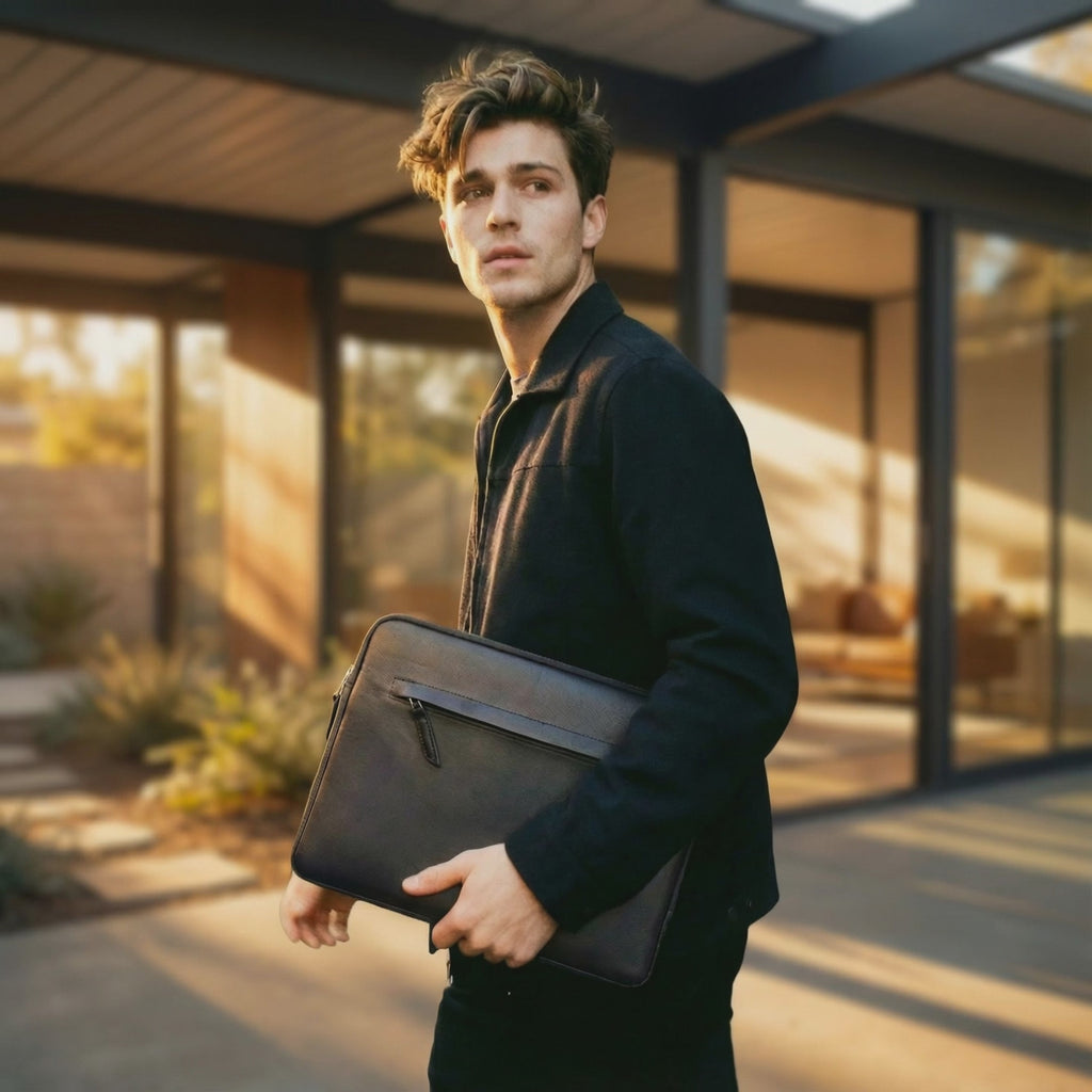 iPad Pro und Air Hülle ANGUS aus Leder Farbe: Schwarz Größe: iPad Pro/Air 11 / 10.9 + Magic Keyboard Pack & Smooch